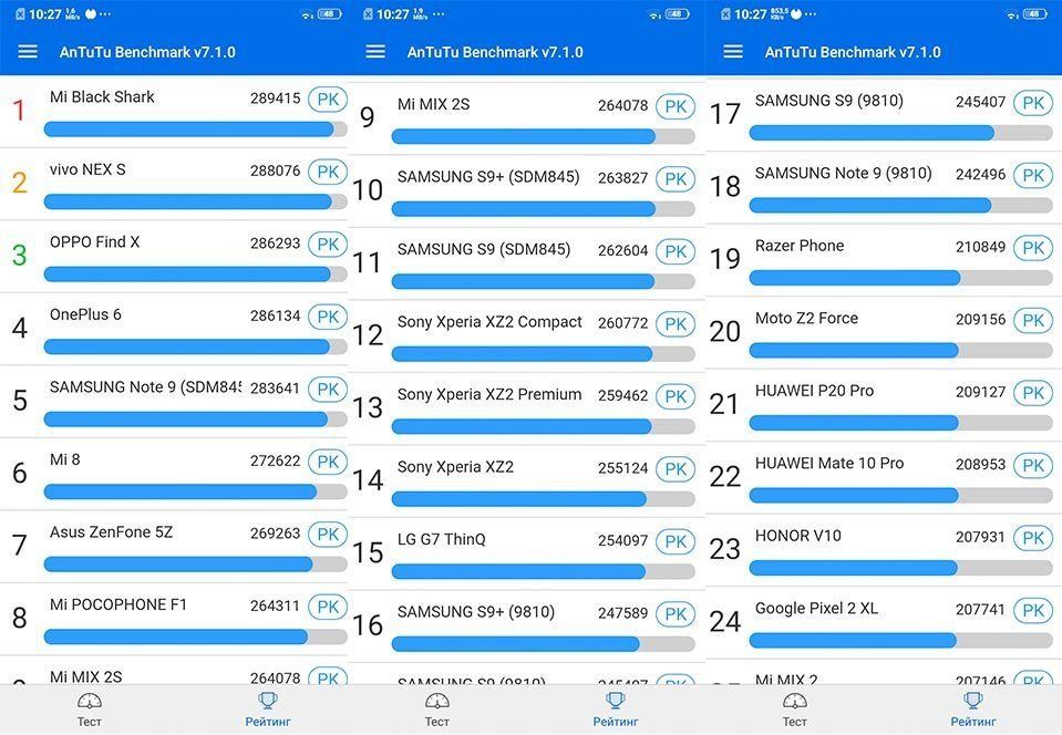 Testing with AnTuTu Benchmark gave the following results: