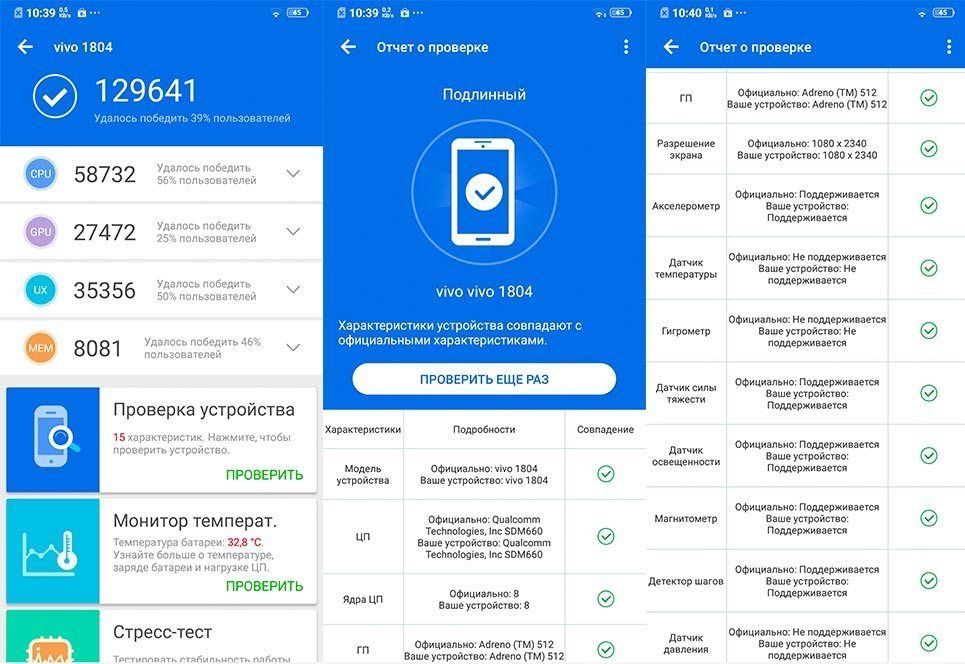 Vivo also packaged an infrared sensor in the analyzed model, which allows unlocking a smartphone using face identification. Moreover, this can be done in low light conditions.