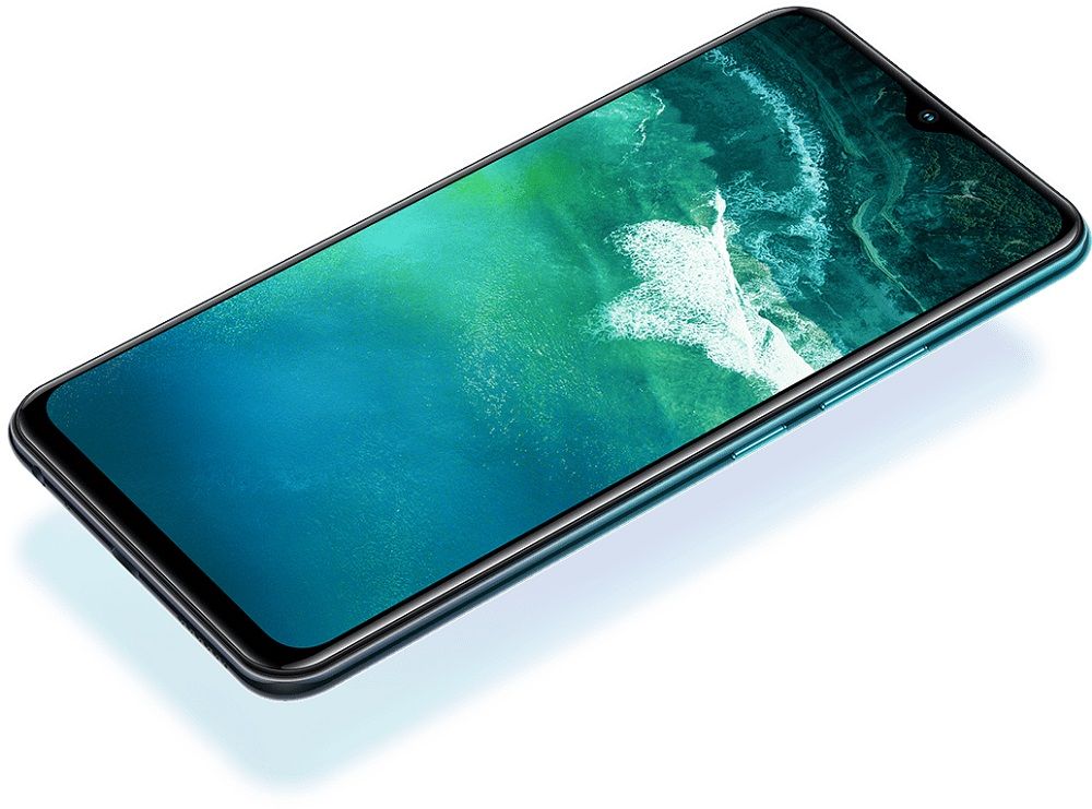 The front surface of the device houses a huge 6.35-inch display with a resolution of 1544x720 pixels (HD). The display takes up almost 82 percent of the free space on the front panel and has a protective coating of Corning Gorilla Glass 6. The chin and eyebrow on the front panel have already literally disappeared, so it seems as if the screen originates directly from the edges of the case.