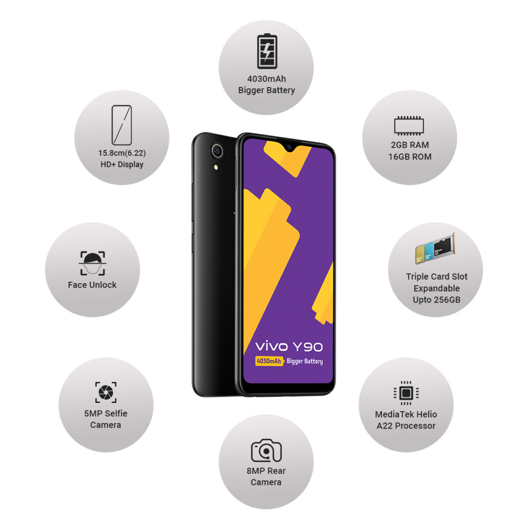 - For a budget model, the Vivo Y90 has excellent specifications. It is safe to say that the manufacturer was able to optimize the value for money.