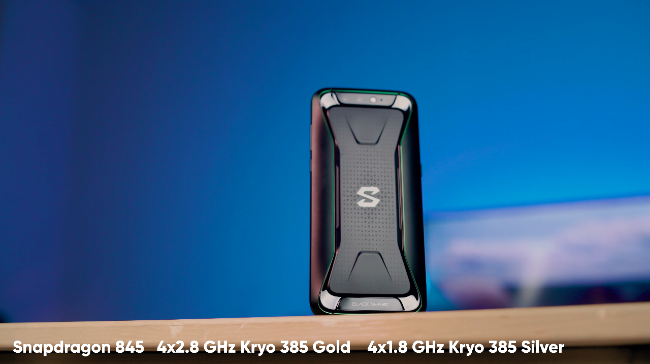 Also on the back are the rear camera (main and secondary), flash and microphone. Below is the “Black Shark” logo.
