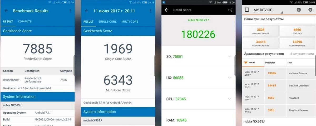 Far from budget smartphones Nubia Z17S are equipped with truly not frail hardware. We will sharpen our attention on the eight-core Snapdragon 835 processor. Split into two pairs of four cores. The first four with a frequency of 2.35 GHz, the second - 1.9 GHz. Parallel cores do a better job with heavy tasks.