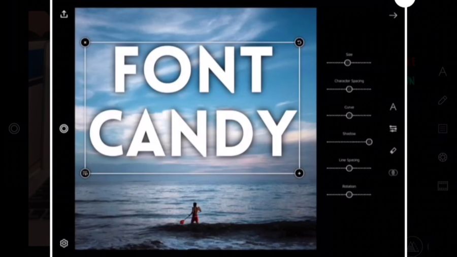 With Font Candy, you can choose a beautiful font, size and color, rotate, skew text, and more.
