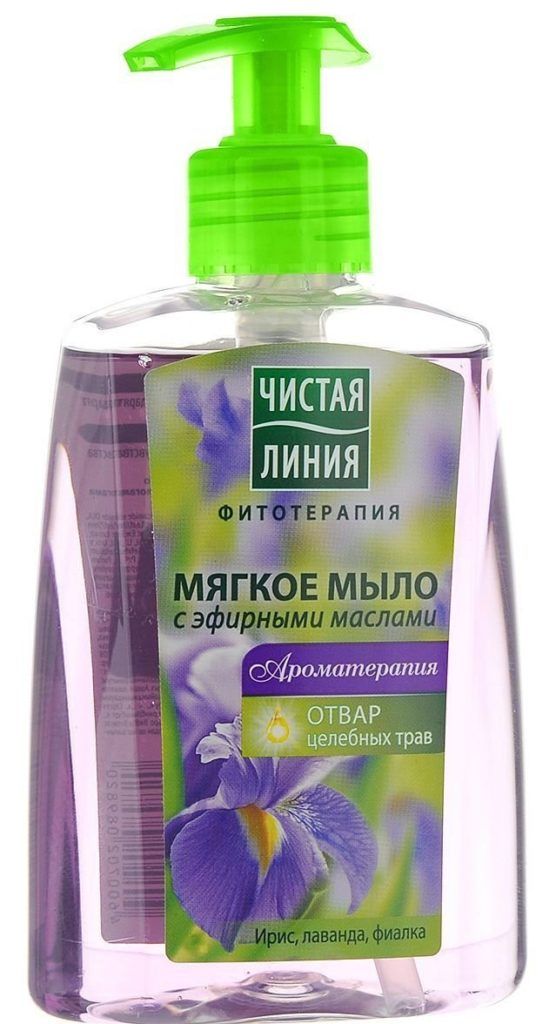 Liquid soap from the Pure Line company contains a decoction of medicinal herbs and essential oils of iris, lavender and violets. This combination guarantees excellent caring properties.