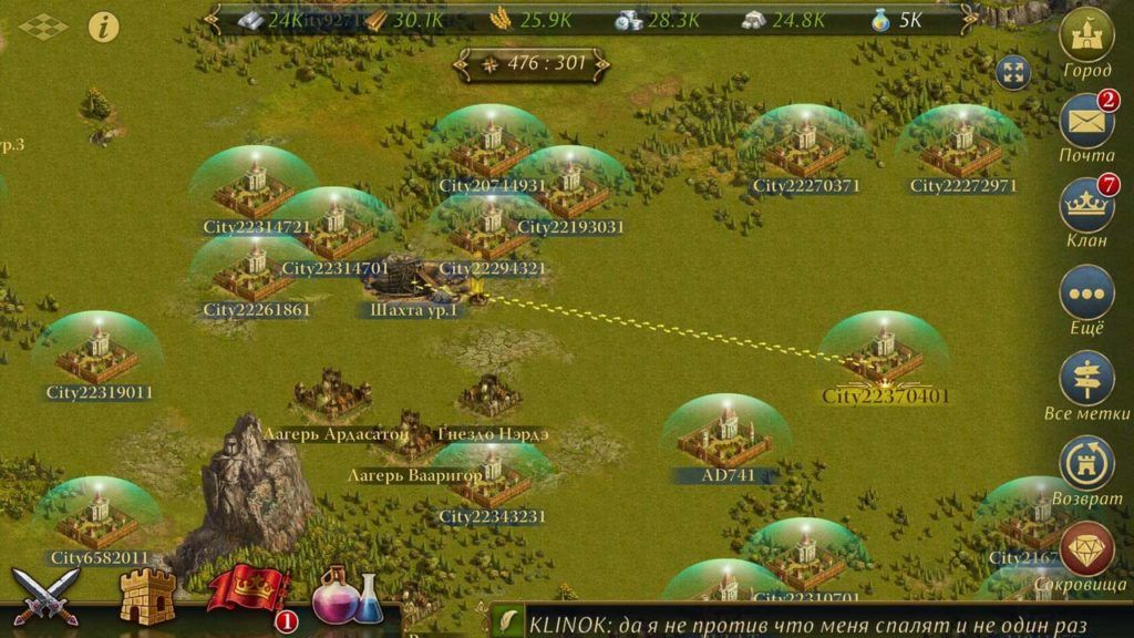 In order to develop his power as best as possible, the player will need from the first minutes of the gameplay to expand his personal territory and the possessions lying on it. First of all, it is worth building mining mines and similar facilities for the extraction of wood and stone.