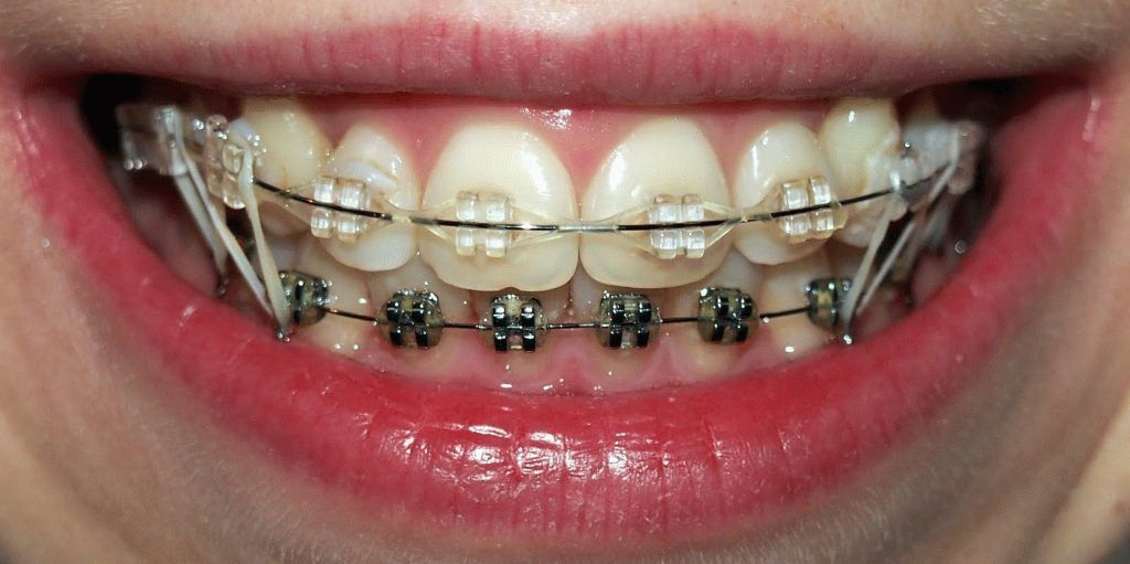 These are vestibular apparatus made of several materials. Ceramics or sapphires are used in the smile zone, and metal in the chewing zone. The braces on the lateral teeth are not visible to others, so they can even be made of dark metal. In addition, this option helps to significantly save on treatment.