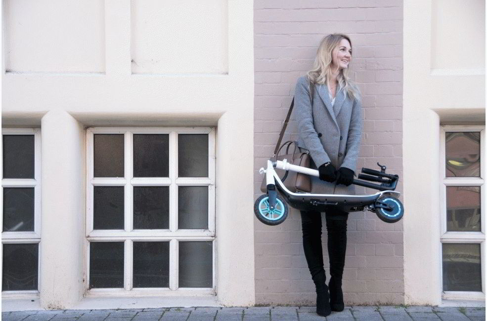The weight of this scooter is only 6.4 kilograms. At the same time, it can withstand the largest load among analogues - up to 125 kg. Allows the child to use it. It looks simple and minimalistic, and develops good speed. It even has a three-speed gearbox. In the presence of a display with indicators of speed, time, distance and, of course, the level of charge. Folds down to a compact size and handles can be unscrewed. Charges in two hours.