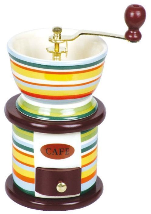 Classic retro machines, where coffee is ground using millstones. The grains are poured into a container, closed, and to grind them into powder, the owner will need to turn the handle of the device himself. The advantages include a very low cost and no electricity costs in general, design, ease of storage and transportation, the ability to use it anywhere (even outdoors). The disadvantages are the need to do everything manually and usually a small volume.