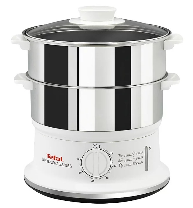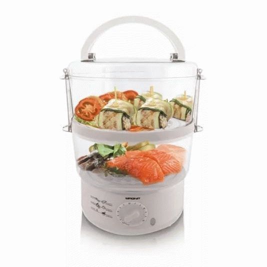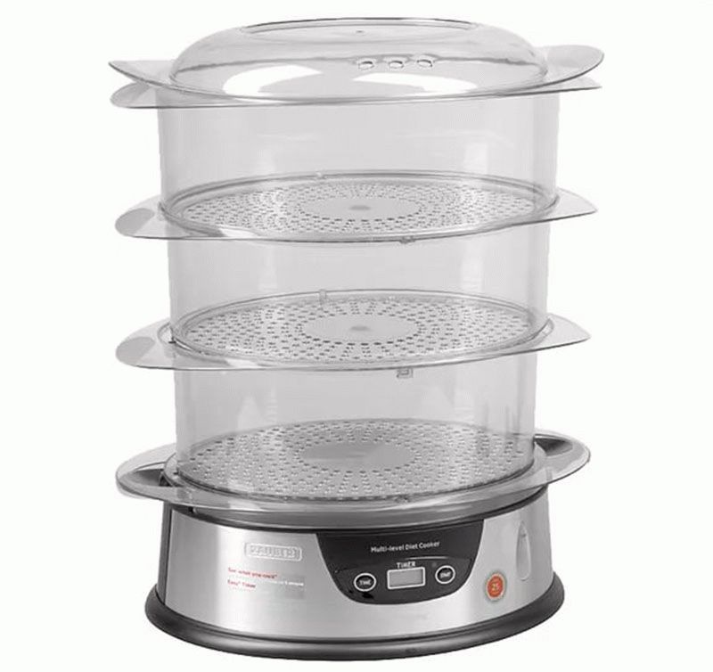 This steamer model includes two baskets, a timer and a sound signal. The device is controlled mechanically. You can cook two different dishes at the same time without fear of mixing up the flavors. It is suitable both for baby food and for creating any dishes suitable for a healthy diet.