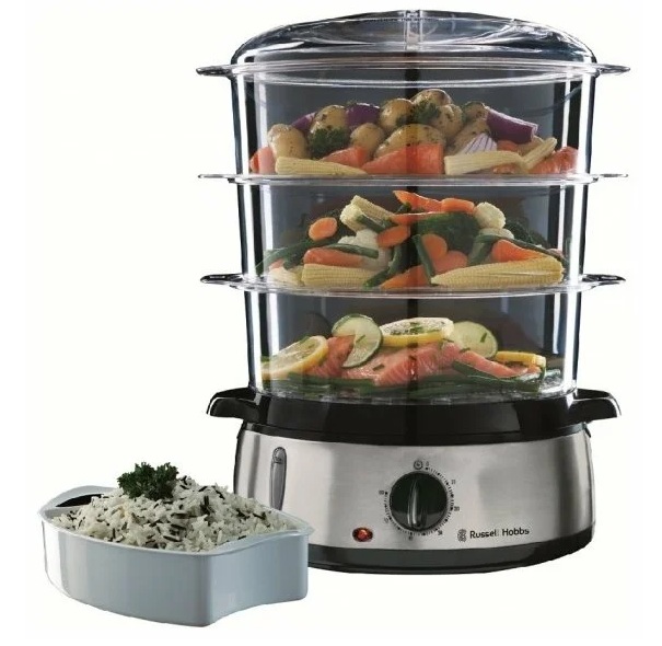 In second place is the little-known company Russell Hobbs with its three-tier appliances, mechanical controls and glass containers that allow you to monitor the cooking. The body is made of stainless steel, equipped with a timer with shutdown, sound signal, start indication, water level indicator and cavities for boiling eggs. The set includes a bowl for rice.The advantage of this model is its versatility and reliability at a low cost - only 2800 rubles.
