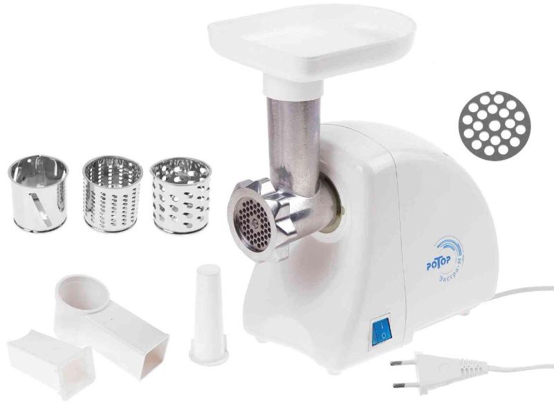 It is indeed a high quality and durable model that will last for many years. In addition to 2 perforated discs that allow you to make minced meat of the desired grinding, several attachments are supplied with the device.
