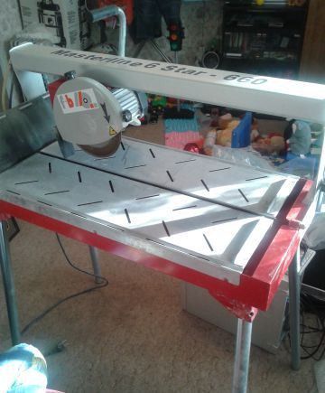 Manufactured by an Italian company. It is used for cutting material up to 900 mm long, as well as for diagonal cutting of 63x63 tiles. The cutting accuracy is perfect, the break is excellent, suitable for construction repair work. The dimensions of this design are traditional. The machine is excellent, professional.
