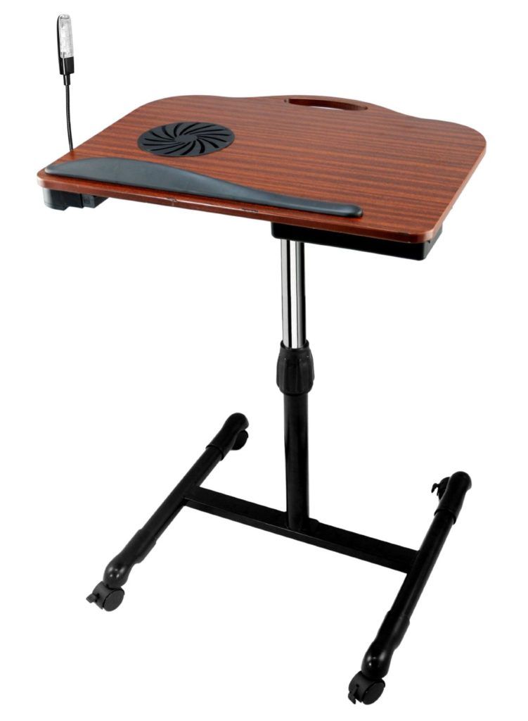 Here you can adjust the height for absolutely any person. The fan in the structure is located on the left side. This is because most laptop models have a video card located there. At night, the built-in lamp that runs on batteries will become an indispensable assistant. In addition, the accessory allows you to store various writing utensils, and can also be moved thanks to the built-in wheels. Its cost is 2400 rubles.