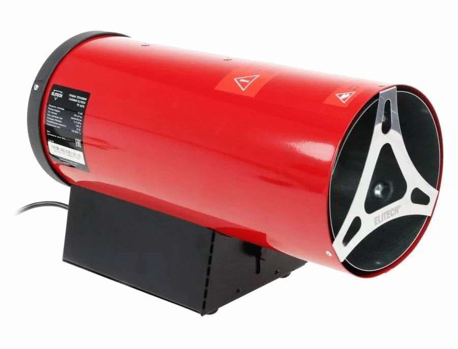 The ELITECH TP 10 GB heat gun belongs to the gas type. It is designed for heating rooms with a volume of up to 300 cubic meters. There is an adjustment of thermal power, which saves gas. For safe operation, the gun is equipped with a combustion control system and overheating protection. There is also piezoelectric ignition. The ELITECH TP 10 GB cannon should be used in rooms with good ventilation. Suitable for heating areas such as a sales area, garage, warehouse. The approximate cost of the model is 4700 rubles.