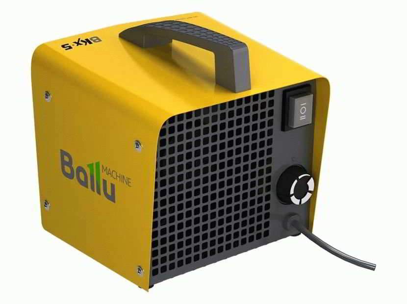 The BaIIu BKX-5 heat gun has a ceramic heating element that distributes heat over 35 square meters. Heating power 3 kW. There is a power adjustment, the number of levels 3. There is a fan without heating, a thermostat and temperature control. Product weight 2.2 kg. Thanks to the metatalceramic heating element, hot air is quickly circulated, while ensuring the absolute safety of using such a gun. The gun is suitable for small spaces, for a summer residence, for a garage. The cost is about 2000 rubles.