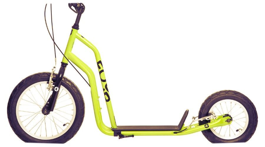 The model features a heavy-duty frame, front fender and double clamp. The handles are made of flexible dual material for better comfort and better durability. In addition, the scooter is equipped with soft rear brakes, which provide braking that prevents abrasion of the rear wheel.