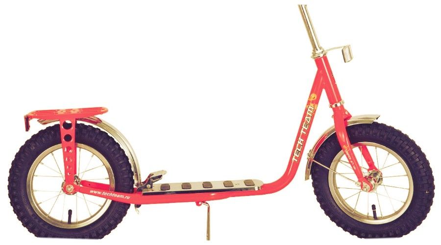 Vehicle (year of manufacture 2026) for adults and children from 10 years old with foot and hand brakes, equipped with a footrest. The main feature of the technique is two wheels of different diameters (18 and 14 inches), which give good roll, which is also influenced by bushings on industrial bearings, as well as a soft ride.