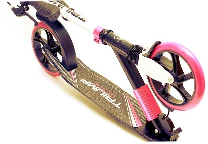 It has ABEC 9 standard bearings and polyurethane wheels with a diameter of 100 mm. Due to this, the device quickly accelerates and keeps roll-forward perfectly. The scooter can withstand a weight of no more than 100 kg.
