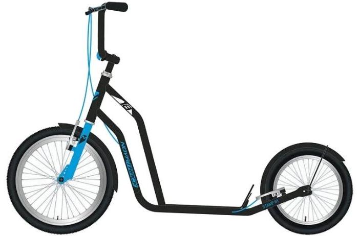 This stainless steel model from China is perfect for performing stunts. It can withstand a rider whose weight is no more than 100 kg with any height: the height of the rack is fixed and is 70 cm.The scooter is equipped with a T-shaped handlebar, the width of which is 52 cm.It is further improved by struts, but at the same time the weight is small and is 3.8 kg.