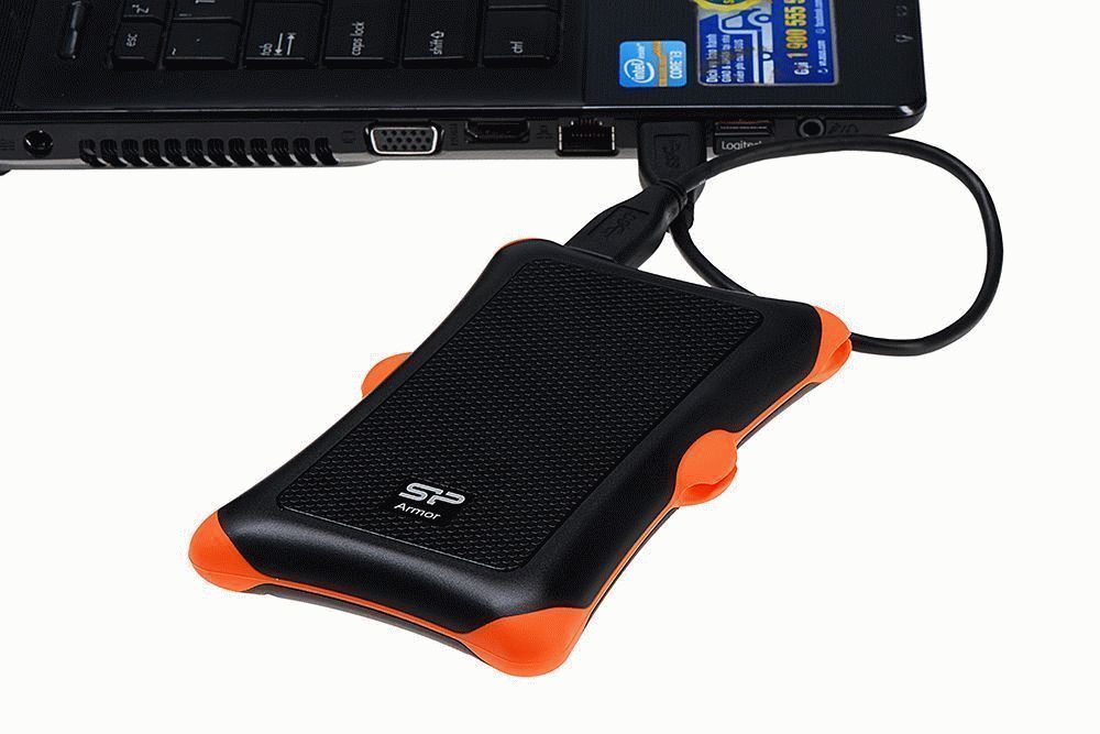 Silicon Power Armor A30 1TB refers to a portable type of external storage medium. Stylish design in orange-black color, the body is made of plastic and rubber. The cable can be fastened around the device. The disk is characterized by good read / write speed, absence of extraneous sounds and vibration. The disc does not heat up during prolonged use.