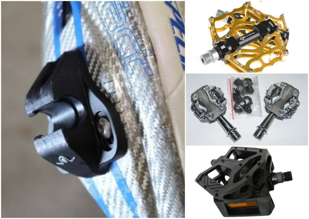 The main support for the cyclist's feet is the spike pedals. It is very important to hitch the shoe to the pedal when performing combinations. A slipped foot is a loss of control of the bike.