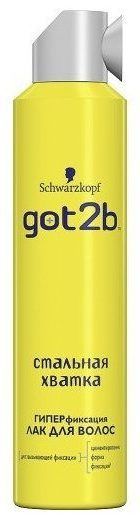 The varnish Schwarzkopf got2b "Steel grip" by its name alone testifies to a hyper-resistant fixation. The can is distinguished by an unusual spray, as there is a restrictor that more accurately directs the jets of the agent. The aroma of the product is quite pleasant and unobtrusive. The product is economical in use, it lasts for a long time. Efficiency is at a height and is confirmed by many customers. The varnish perfectly fixes any hairstyle, allows curls to last up to two days and is great for various creative styling. Hair does not stick together and allows it to look natural, attractive. In addition, the product protects against moisture.