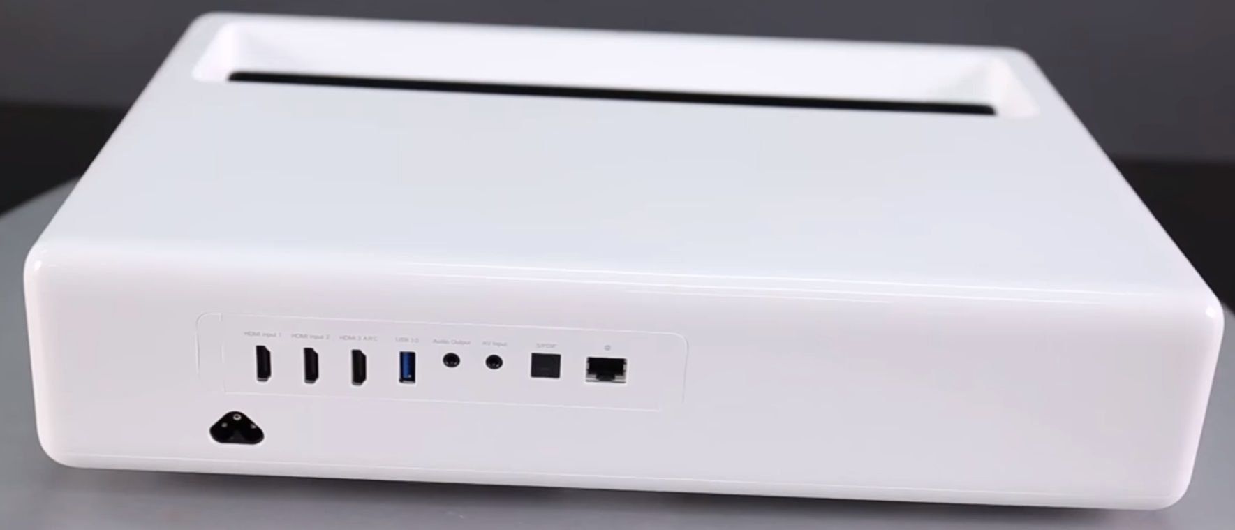 The maximum power consumption during use is 250 W, which is significantly higher when compared with TV. Even massive panels with a diagonal of 60 inches often consume about 100-200 watts. Anyone who wants to use the novelty as a complete replacement for TV must be prepared for the fact that they will have to pay much more for light.