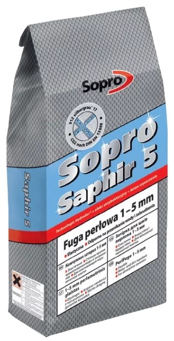Fast-drying cementitious grout with a long-lasting color, for processing joints of ceramic tiles and products from natural stone, glass mosaics. Can be used on heated floors, in damp and wet areas, as well as in food contact areas. The cost of 2 kg of Sopro Saphir 5 mixture: from 300 rubles.