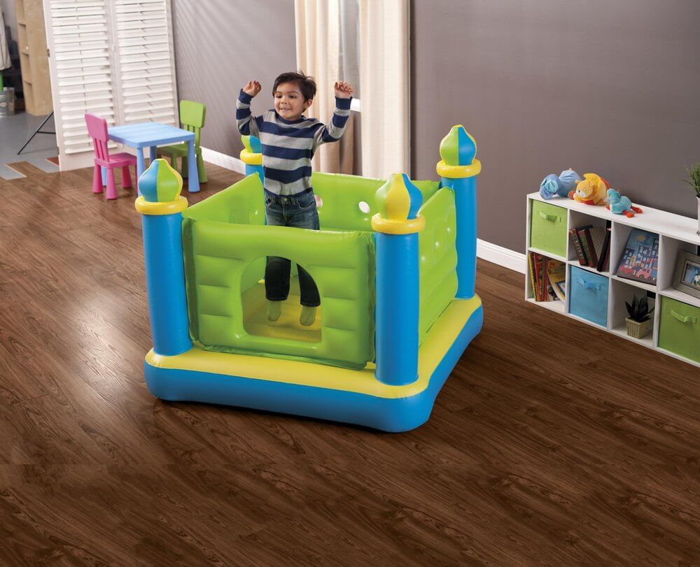 Un tel équipement sportif est fait d'un tissu dense et étanche à l'air et est pompé avec un compresseur. Ils peuvent être de différentes formes: sous la forme d'une maison, d'un toboggan, d'un château, d'une arène. Dans un tel appareil, vous pouvez non seulement sauter, mais aussi monter et monter, si la taille de la structure le permet.